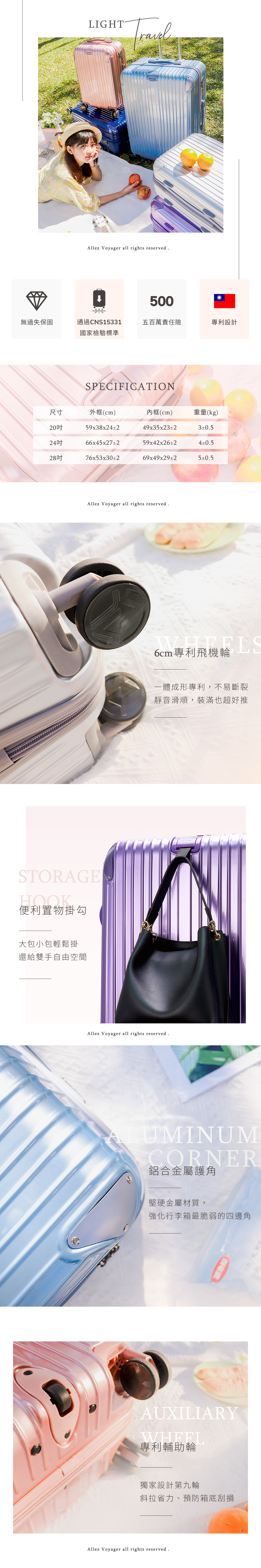 外框:約 76 x 53 x 30 (含輪子.把手.拉桿) ± 2 cm