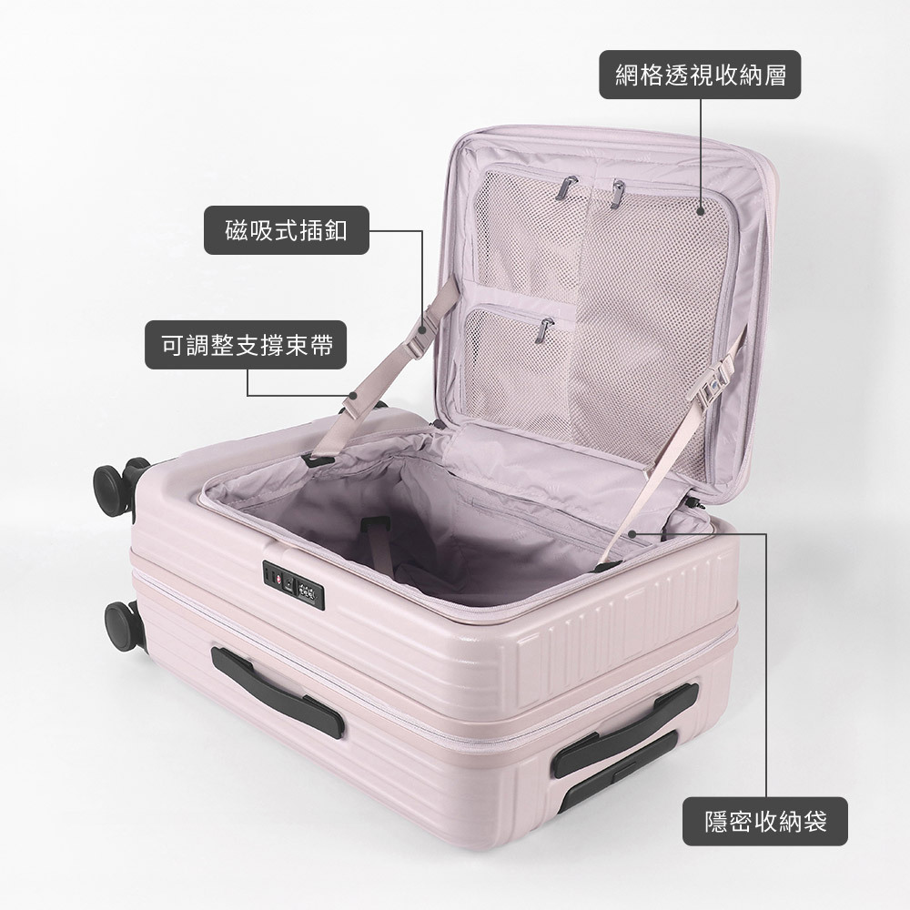 ✔9:1 前開式箱體,開蓋更便利,快速拿取行李
