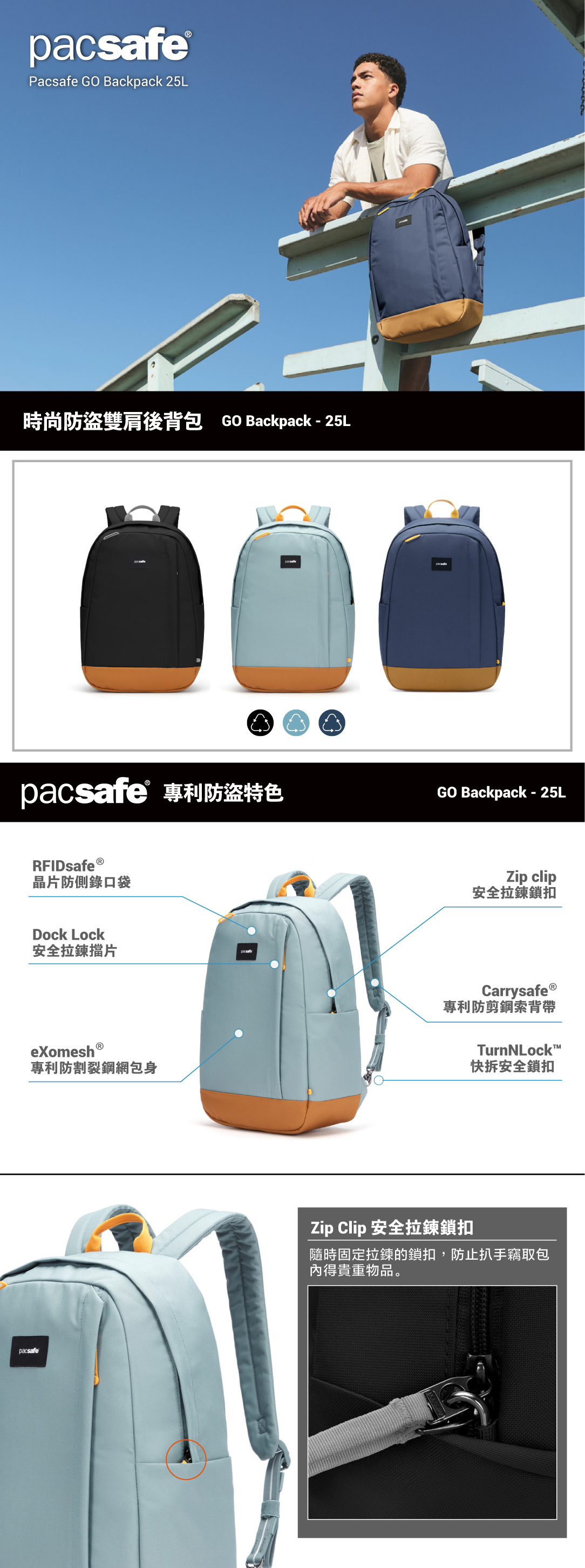 Pacsafe Go 隨行防盜後背包 25L